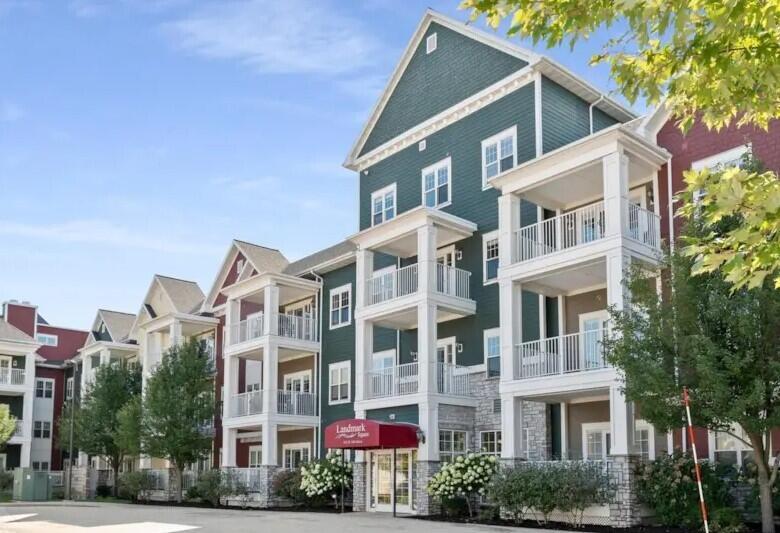 Welcome to Landmark Square- a comfortable, pet-friendly 55+ senior community offering an incredible lifestyle in the heart of downtown. This is one of the larger unis with 1638 Sq ft an open dining/living area, dining area has a walk-in pantry, 1 of 12 units that has a fireplace in the condo association, 2 bedrooms and a office/den. This unit is an end unit so you have lots extra natural light and a private patio. The master bedroom has a large bath with a larger walk-in closet, washer, dryer and linen. This unit provides an assigned parking spot in the underground garage & a storage unit. Many common amenities are included with this unit see condo docs under the document tab or go to the website landmarksquarecondos.org. Internet, Cable & water included in monthly condo fees