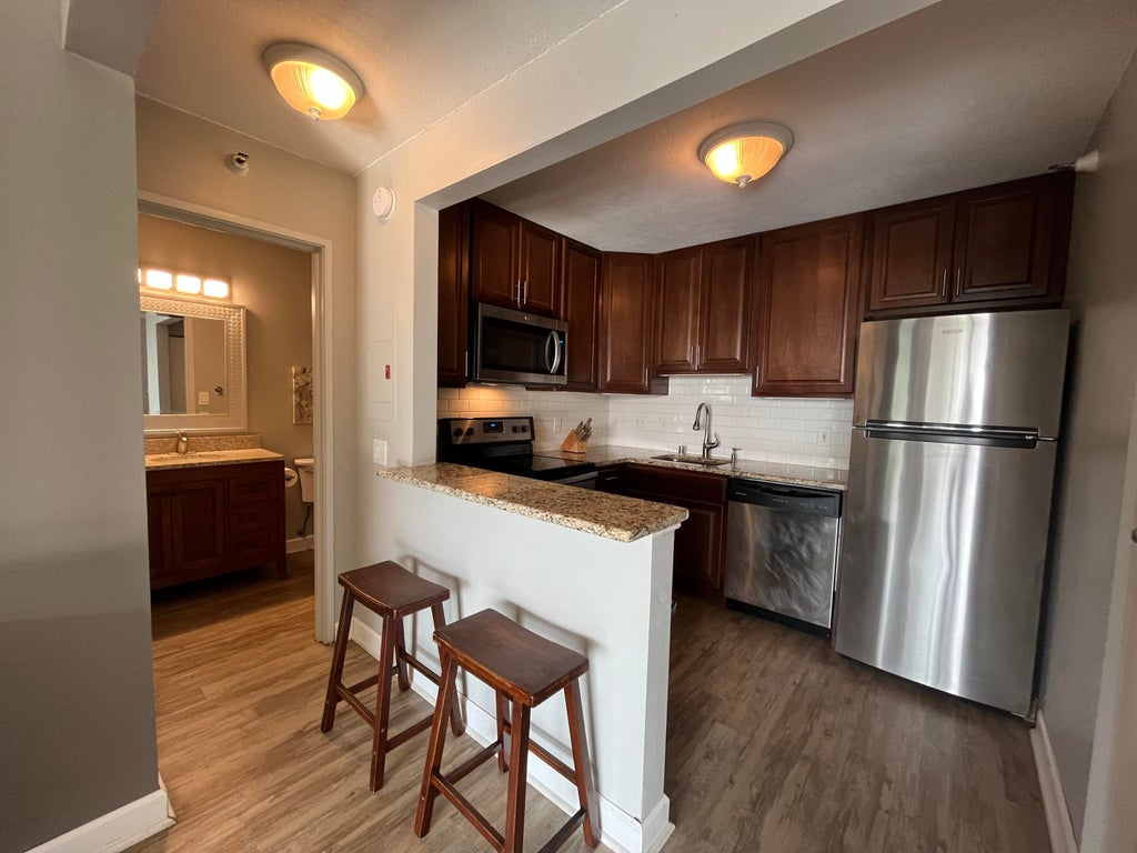 Welcome home to this beautifully designed one-bedroom, one-bath condo at Landmark on the Lake. This beautiful recently updated space features an open floor plan flooded with natural light and stunning city views. Enjoy a spacious living area perfect for entertaining or relaxing, a gourmet kitchen equipped with stainless steel appliances, and a bedroom retreat. Explore the vibrant Brady Street neighborhood filled with trendy cafes, boutique shops, and convenient access to the lakefront and Oak Leaf Trail, all just a short stroll away. Building amenities include indoor parking, a fitness center, indoor pool, outdoor terrace with stunning lake views and 24/7 concierge service.