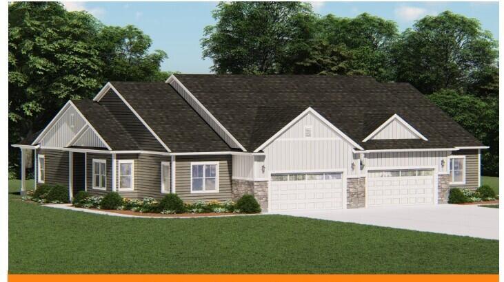 New Construction- ready September! Luxury Ranch Condominium with 2 Bedroom plus Flex Room, featuring open design concept with 9' Ceilings throughout. Beautiful Kitchen for entertaining with a large center island, cabinetry with soft close hardware and quartz countertops. Spacious Great Room features a stunning stone to ceiling fireplace and box tray ceiling! Flex Room with a door offers a flexible space to fit your lifestyle. Private Primary Suite includes box tray ceiling, with a luxury bathroom with ceramic tiled shower and bench, double bowl vanity, and large walk in closet with access to Laundry Room.