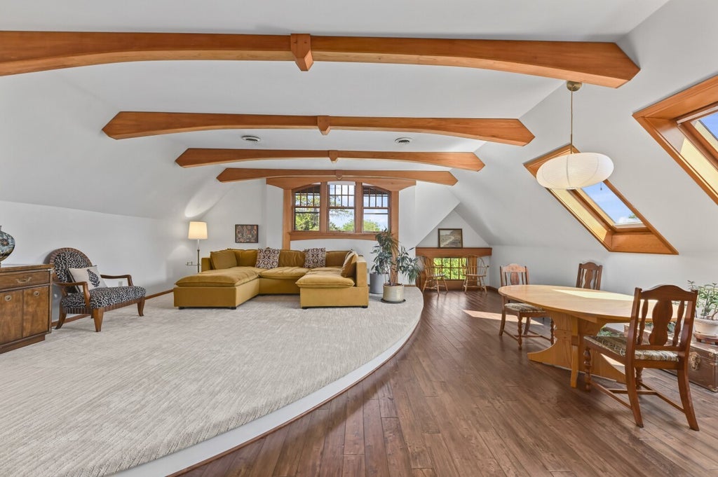 Exceptional space abounds in this rare, vintage third floor walk-up. Set in a blue-ribbon location near Lake Park and lively Downer Avenue, you'll love the buzz of this prized, historic neighborhood. Skylit unit spills w/light from the East and South (your plants will love it here!) and showcases all new luxury flooring, updated fixtures, vaulted ceilings, unique custom trusses, moldings, timeless cabinetry & pristine tilework. Floorplan is ideal for entertaining. Watch the chef at work from the large island while sharing lively conversation. There is a 2nd FL airing porch in addition to a rear common deck and courtyard for outdoor enjoyment. Approx 148 SF expandable attic is included in SF & awaits your ideas. One off-street parking space and C/A complete this urban dream package.