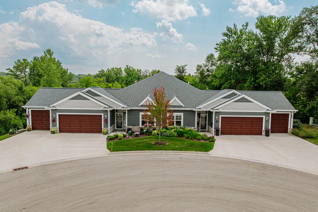 Welcome to Phantom Lakes Preserve Condos! Situated on over 21 acres.. This development has over 14 acres of protected conservancy included that abuts Phantom Lake & Mukwonago River. This 2 bedroom, 2 bath unit w/ glass shower doors is situated at the end of the cul-de-sac bordering treelined privacy in a highly desirable location w/ an extended drive for up to 7 cars & oversized 3.5 car garage. The kitchen has ample cabinet & prep space w/ stainless appliances, pendant lighting, above & below LED cabinet lighting. Dinette w/ doors to extended patio. GRM w/ gas fireplace & stone surround. The primary suite offers an oversized WIC, en-suite bath w/ double vanity, private lavatory & shower stall w/ glass doors.. Plush carpeting. Stairless floorplan. Gutter guards.