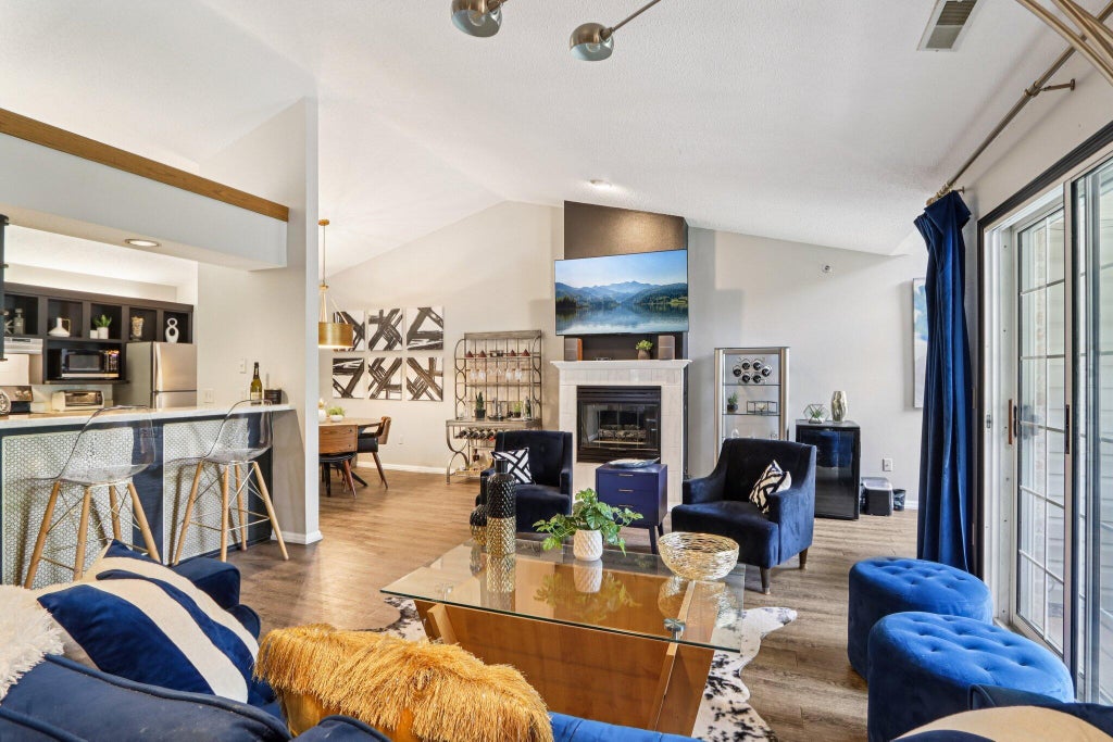 Beautifully updated 2BR/2BA upper in The Willows! Enjoy this premium location within the complex bordering wooded area. Gas fireplace has stunning marble tile. Office nook includes floating built-in desk. Kitchen offers breakfast bar, newer SS appliances, updated cabinets and countertops, and white subway tile backsplash. Other updates include newer flooring, lighting, molding, doors, and interior neutral paint. Both bathrooms feature floating vanities, new fixtures and hardware. Newer furnace and AC plus 50 gallon water heater. Plenty of storage space including a huge walk-in closet that is over 15 ft long. Outdoor space includes a private covered balcony with nature views and patio on the side of garage. 2-car garage with new Liftmaster smart opener and 2 ceiling fans. Great location!