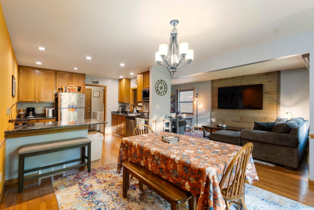 Beautifully updated, open-concept condo featuring high ceilings, a spacious master bedroom, and a functional, move-in ready layout. The kitchen boasts all stainless steel appliances, granite countertops, and a walk-in pantry--perfect for cooking and entertaining. Enjoy the ease of first-floor laundry and the warmth of natural light pouring through west-facing patio doors in the dining area, ideal for relaxing with an evening drink and watching the sunset. The large backyard offers rare outdoor space, and thoughtful upgrades over time have only enhanced the home's comfort and quality. Located near 60th and Forest Home, this condo offers quick access to shopping, dining, work, and family. A rare find that blends space, style, and convenience in an unbeatable location.