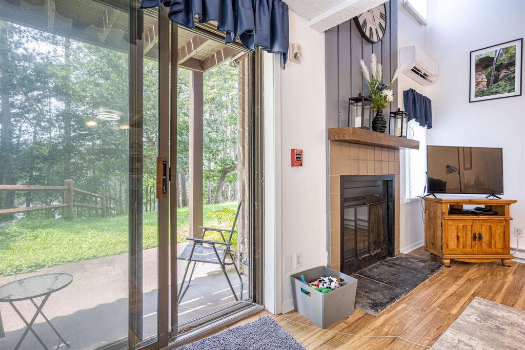 Welcome to the Dells Club! This beautifully renovated, fully furnished two-bedroom, 1.5 bath end unit condo offers a peaceful retreat just outside the popular Wisconsin Dells. Enjoy the serenity of the area while being close to all the excitement. Every inch of this condo has been thoughtfully updated, featuring a stunning floor-to-ceiling fireplace, vaulted ceiling, remodeled bathrooms and flooring throughout. Relax on your private balcony or patio, overlooking the Wisconsin River. . The Dells Club community boasts a variety of fantastic amenities, including river access, a tennis/pickleball court, outdoor pool, fitness center, clubhouse for special events, a community garden, and so much more!