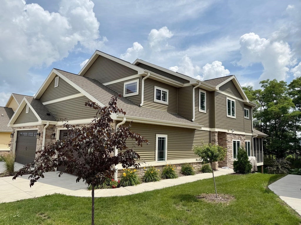 Back on the market, Buyer financing fell through (at no fault of the Seller). This move in ready 2 story townhouse condo offers nearly 2,100 sq ft, 3 bedrooms, 3 1/2 bathrooms, open floor plan, bright & sunny living room with stone fireplace, kitchen with stainless steel appliances, island, solid surface countertops and pantry. Spacious dining area with patio doors to the relaxing screen porch. Large owner’s suite with coffered ceiling and walk-in closet, exposed lower level with cozy family room and 3rd full bath and a 2 car attached garage! Steps from walk / bike path, a short walk to Windsor Community Park and minutes to Madison.