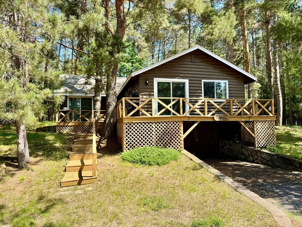 Charming half-log cabin in St. Germain with 2 bedrooms, 2 baths, and over 1,000 sq. ft. of Northwoods charm. Part of the Clearview Lodge Condo, this property offers shared beach and pier rights on 1,617-acre Big St. Germain Lake—connected to Lake Content and Fawn Lake. Enjoy direct access to the snowmobile trail and nearby biking/hiking routes. The unfinished basement under the cabin is ideal for storing snowmobiles and gear. With lakefront restaurants, a popular sand bar, and year-round recreation at your doorstep, this unique cabin is also a fantastic rental opportunity!