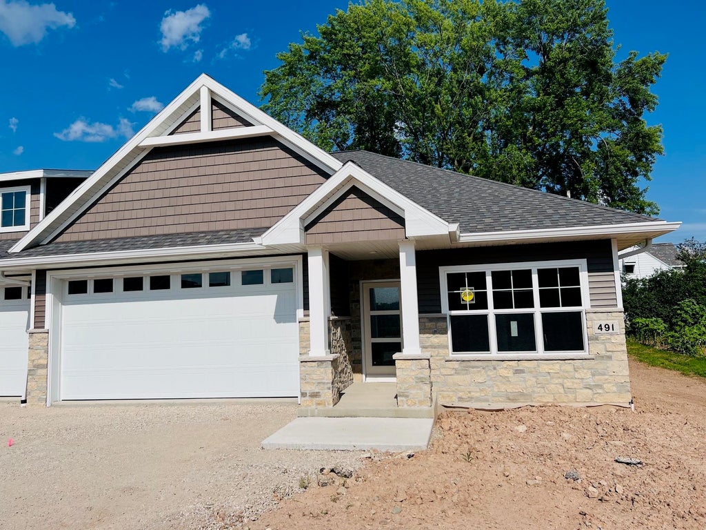 Enjoy carefree living in this beautiful no step entry, side by side condo. Open concept 1-story with spacious great room featuring tray ceiling, large daylight windows, gas FP & door to maintenance free deck. Kitchen offers abundant custom cabinets, quartz countertops, tile backsplash & center island. Enjoy the large master suite with tray ceiling, walk-in closet, dual sinks & walk-in shower. Other amenities include 2nd bedroom/office, first floor laundry & full basement with egress windows & rough-in for 3rd bath. Photos are similar but may not be exact. Floor plan is the same but colors may vary.