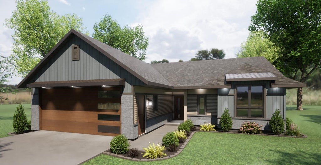 Introducing the first ranch-style single-family home in the growing Blue at the Trail riverfront development. Designed with a bold & sophisticated Modern Western-Prairie aesthetic, this home offers exceptional quality and craftsmanship. From the striking exterior to the thoughtfully designed interior, enjoy 9’ ceilings, tray ceilings in the foyer, living room & primary suite, and custom cabinetry with solid-surface countertops throughout. The open-alcove pantry, brick gas-log fireplace, garage entry bench with lockers, walk-in closets, spacious patio, and bonus garage storage add both style and functionality. Full GE appliance package included, plus snow & lawn care are included for a more-time-for-you lifestyle. Exterior images are renderings. Contact us today for a private showing!