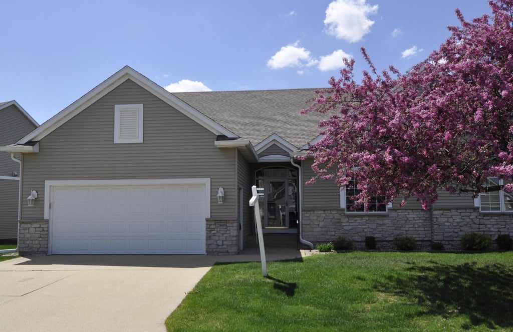 Newly finished wet bar! Spotless and move-in ready three bedroom, three bath townhome in the highly desirable Stonehedge townhome association. Open layout with high-end finishes. A spacious living room with a cozy fireplace leads to the sunroom. Beautiful kitchen with stainless steel appliances, stunning backsplash, and a large eat-in area leading to the deck. The main floor has a bedroom with a private bath and walk-in closet. The second bedroom is perfect for an office or guest room. Main floor laundry for added convenience. Finished lower level with walk-out, great family room, and considerable storage space. Newly added wet bar area! Updated appliances and furnace. (2022) Roof replaced in 2021. Attached is an oversized 2-car insulated garage. Close to the NE clinic - ideal location!