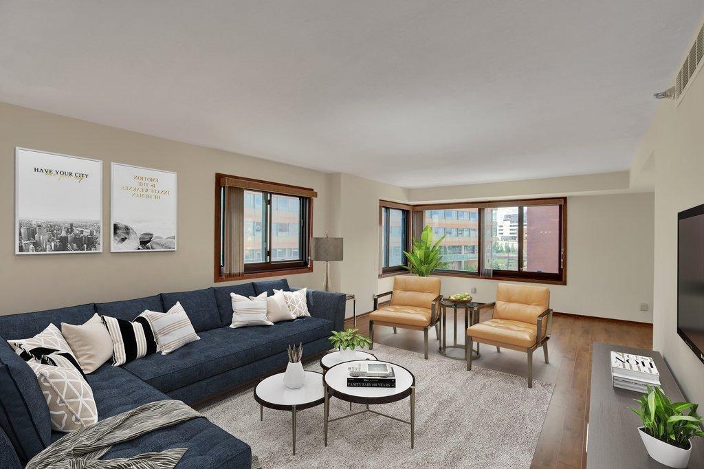 This large sunny corner unit features an open spacious floor plan with wood and tile floors plus brand new carpet in the bedroom! Walk out to your own private balcony that has plenty of room for a table and chairs while taking in city views. Updated bathroom and lots of organized storage throughout unit. HOA includes central air, heat, high speed internet and basic cable! Enjoy an on site fitness gym with sauna and hot tub. Relax on the 3rd floor community terrace with greenery, grills and seating areas. Host private parties in the gathering room and use the guest suite for visiting family. Optional underground attached parking is available. *** Sellers to pay off building facade assessment (approximately $17K) at closing*** Great location near downtown events, CHS, Xcel Center, restaurants, parks, farmer's market and more. Pets are welcome. This is your opportunity to enjoy Super low maintenance single level living at it's best in the heart of St. Paul!