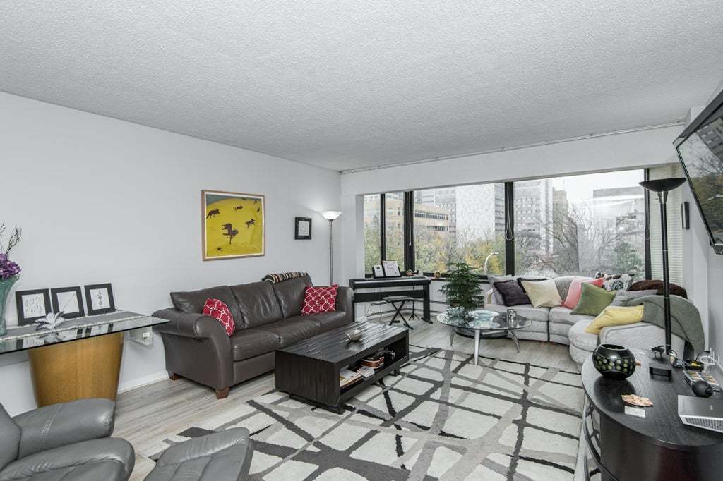 This beautifully maintained 2-bed, 2-bath corner unit condo offers a fantastic low-maintenance lifestyle! You'll love the updated kitchen featuring granite countertops and soft-close cabinets. The open living areas boast attractive laminate flooring and offer pleasant city views. Both bedrooms are generously sized and include plenty of closet space. The community amenities are excellent, including an indoor heated pool, exercise room, patio with a grill, library, kitchenette, and convenient on-site laundry. You'll also appreciate the underground heated garage with an assigned parking spot conveniently located near the elevator. The HOA covers all utilities except for electricity. The location is ideal, providing easy access to everything downtown has to offer, such as restaurants, shopping, the clinic, and the subway system.