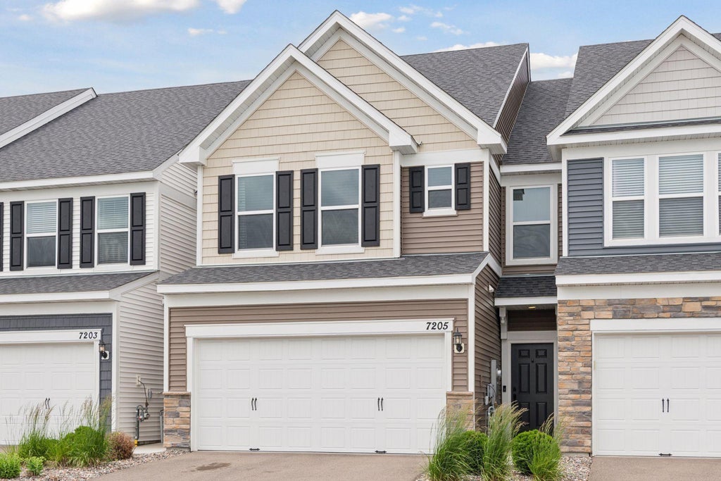 Like new construction without the wait! Welcome to this beautifully upgraded Windrose townhome—where modern design meets everyday comfort. From the moment you step inside, you'll notice thoughtful upgrades throughout, including wide-plank LVP flooring, upgraded flat-paneled doors with sophisticated matte black hardware, and crisp enameled millwork that add a polished, timeless feel. The open floor plan makes entertaining and daily living a breeze. At the heart of the home is a well-equipped Kitchen featuring extensive cabinetry, quartz countertops, a large island, and a stainless steel Whirlpool appliance package. Just beyond, the Dining Room is highlighted by a designer light fixture and a sliding glass door that opens to your private Patio—ideal for grilling, dining al fresco, or simply enjoying a quiet evening. The adjoining Family Room is warm and welcoming, with a gas fireplace that adds just the right touch of coziness. Upstairs, the private Primary Suite is a relaxing retreat with a spacious walk-in closet and a beautifully finished ¾ bath complete with an upgraded tiled shower and comfort-height vanity. Two additional bedrooms are housed on the upper level along with a full bathroom, and a versatile Loft offers bonus space for a home office, reading nook, or play area. A dedicated Laundry Room provides everyday convenience and completes the upper level. Enjoy the best of Maple Grove living with easy access to shopping, dining, and recreation—including nearby Rush Creek Golf Course, Fish Lake Regional Park, the Shoppes at Arbor Lakes, and the 44-acre award-winning Maple Grove Central Park. Skip the stress of building and enjoy a move-in ready home with all the extras!