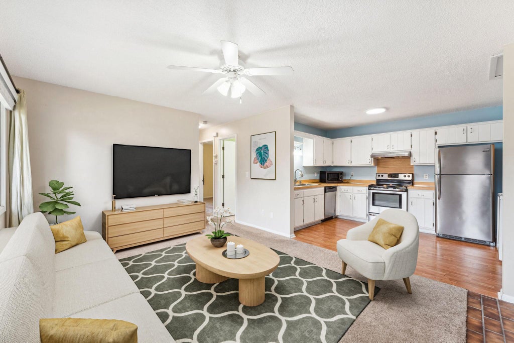 Are you a first-time buyer or downsizing or rightsizing and would like to live in a very nice and well-kept, quiet but friendly neighborhood? Then this home is for you! This exceptionally nice, move-in condition, main floor townhome offers you 2 roomy bedrooms, a tiled full bathroom, and a gas/brick fireplace! Over-all a delightful and cozy layout! See the floorplan attached to the photos! Stainless appliances, white cabinetry, and check out the list of upgrades and improvements since 2020 and more recently! Roof replaced by the HOA in 2020 and since 2021 - New carpet, new water heater, new fan in A/C, new blinds in living room and 2nd bedroom and ceiling fan. And a whole bunch of little things that will just make your life easier! New faucets in the kitchen and bathroom, new doorknobs, new drawer pulls in the bathroom, new garbage disposal, new water filter for the kitchen sink plus a new shut-off valve under the sink, new light fixtures in the kitchen, hallway, bathroom and 2nd bedroom, and a new garage door spring. This list goes on and on which clearly makes the comment, "move-in' condition such a strong statement! You must see this lovely home! This home is not for rent!
