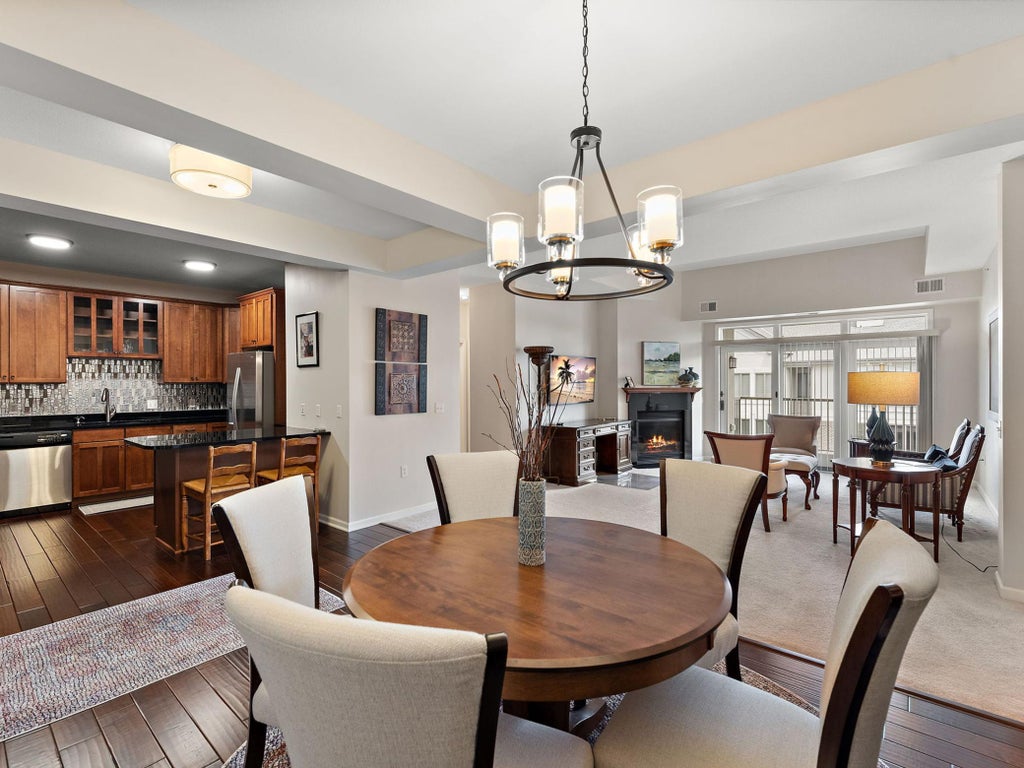 Sophisticated top-floor living in the heart of Edina. This beautifully updated two-bedroom, two-bath residence offers timeless finishes and thoughtful design, including granite countertops, stainless steel appliances, and a gas fireplace that adds warmth and elegance. The spacious primary suite features a generous walk-in closet and a renovated en-suite bath. Enjoy the peace of mind of a newly installed furnace and air conditioning. Located in a meticulously maintained building with exceptional amenities: a stylish community room with fireplace, full kitchen, and patio, a guest suite for visitors, a well-appointed fitness center, and a secure underground parking with a car wash. Unmatched convenience near Highway 100, Jerry's Foods, the Edina Library, Senior Center, and popular dining. A rare opportunity to a refined, low maintenance living in a premier location. Includes one designated parking space (#235) and a storage unit (#426) located on the fourth floor near unit 2406.