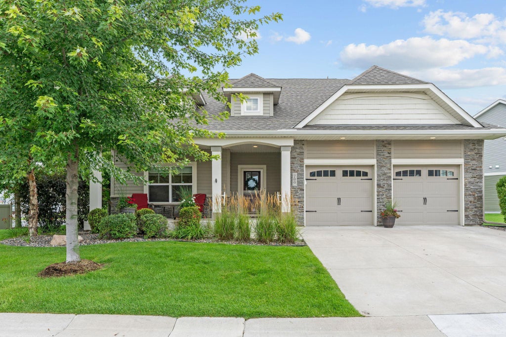 Welcome to this stunning 3-bedroom, 3-bath, 2-car villa nestled on a prime corner lot in Waconia. Step onto the inviting covered front porch for your morning coffee or unwind on the spacious back patio, perfect for enjoying peaceful mornings or entertaining guests. This thoughtfully designed single-level home features an open concept kitchen, dining, and living areas with real hardwood floors throughout, bathed in natural light from the large windows. A chef’s dream, this kitchen showcases elegant Cambria countertops, high-end Bosch oven and Bosch microwave with convection settings; combining style and functionality. You'll love the added luxury of the Bosch boiler under the sink that provides instant hot water in the kitchen! The cozy living room centers around a beautiful stone fireplace with a gas insert and custom built-in cabinetry, adding warmth and character. The luxurious primary suite offers a generous walk-in closet, dual vanity sinks, a walk-in shower, and in-floor radiant heat for a spa-like retreat. An additional spacious bedroom and a full bathroom complete the main level. Main level laundry makes this floor plan one-level living. The expansive lower level provides an additional bedroom, office and 3/4 bath, ideal for guests and has in-floor radiant heat throughout. The HOA takes care of lawn care & snow removal! Modern amenities include a Ring alarm system, a Natural Gas Combustion boiler system that provides unlimited hot water and services the in-floor heating system, a 4x8-foot storage space in the garage, a new sump pump with battery backup, and a 200 amp electrical panel. This home perfectly blends comfort, elegance, and practicality—schedule your private tour today!