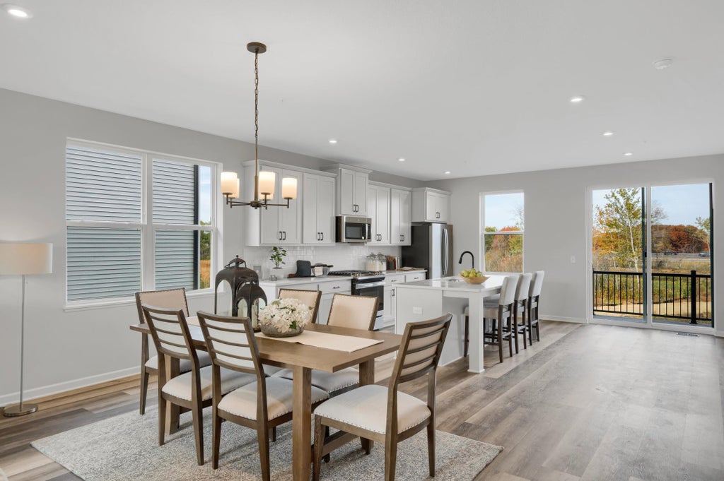 Welcome to this modern 3-story Savanna townhome located at 23140 Willow Drive in Rogers, MN. This new construction home offers a perfect blend of style and functionality. Step inside this thoughtfully designed home and discover a spacious open floorplan that welcomes you into a bright and airy living area. With 3 bedrooms, 2.5 bathrooms, and 2,436 square feet, this townhome provides ample space for comfortable living. The heart of the home rests in the contemporary kitchen featuring a sleek island, perfect for preparing meals and entertaining guests. The kitchen seamlessly flows into the rest of the living space, creating a seamless environment for relaxation and socializing. Another highlight of this home is the owner's bedroom, featuring an en-suite bathroom with a dual-sink vanity, as well as a walk-in closet. Each bedroom offers ample space and natural light. Organize all your storage items in the lower level, and park your vehicles with ease in the 2-car garage, offering practicality for busy lifestyles. This home's location in Rogers offers a balance of tranquility and accessibility, making it an ideal choice for those seeking a peaceful residential setting without sacrificing convenience. Homeowners will enjoy the benefits of a welcoming neighborhood, nearby amenities, and a strong sense of community.