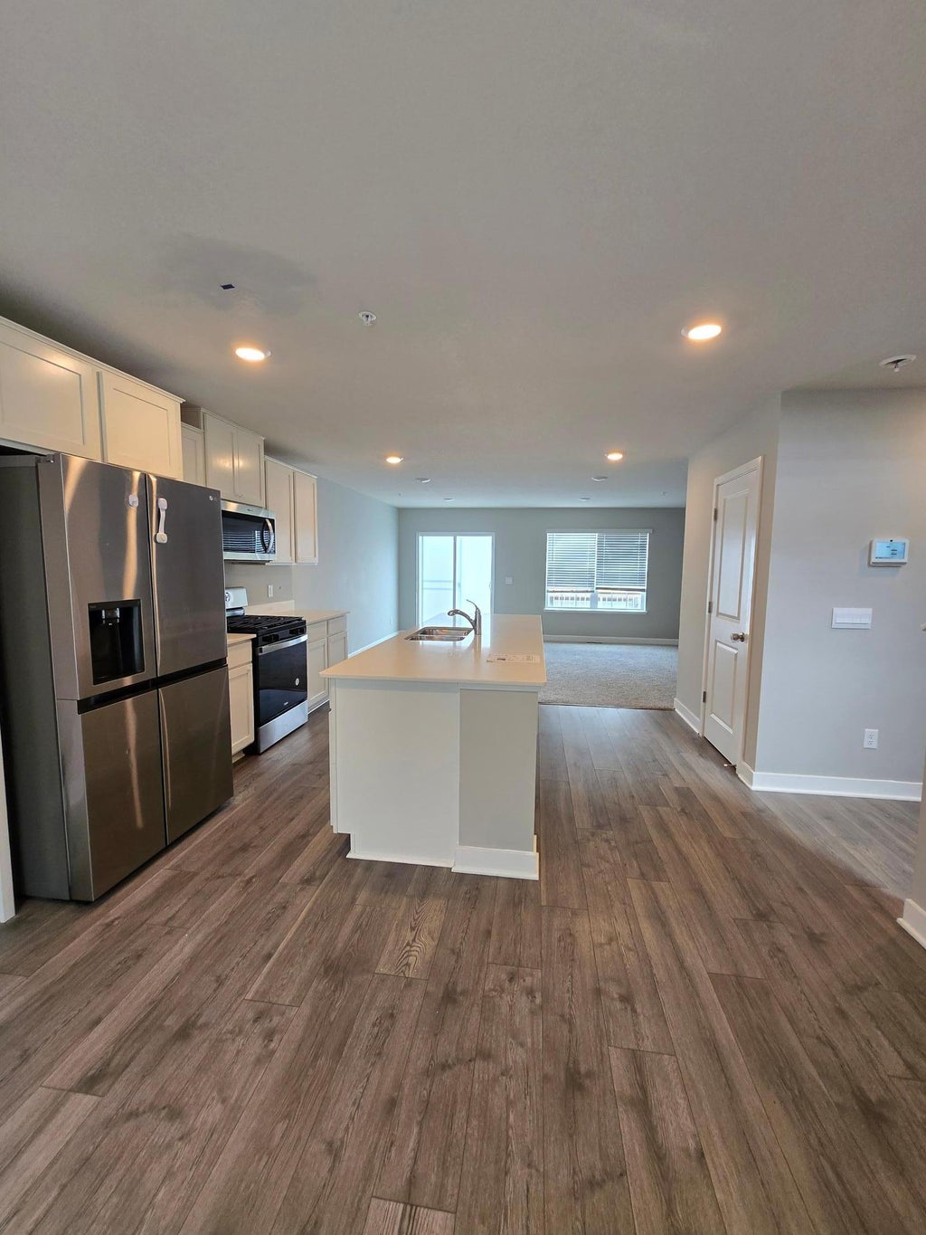 Welcome to our 1-year-old, beautiful 3-level townhome and is located in the heart of Blaine at our Harper's Landing community and features all three bedrooms and laundry on the same floor for your convenience. The finished lower-level bonus room is perfect for guests, a home office, or fitness. The main level is sure to impress with the kitchen of your dreams, featuring 42” cabinets, an expansive white quartz island for 4-person seating, a vented microwave hood and gas range PLUS a huge family room with an expansive deck off of it for relaxation, and a separate dining area on the main level is included. Private dog park, close to parks and more all with a professionally managed HOA.