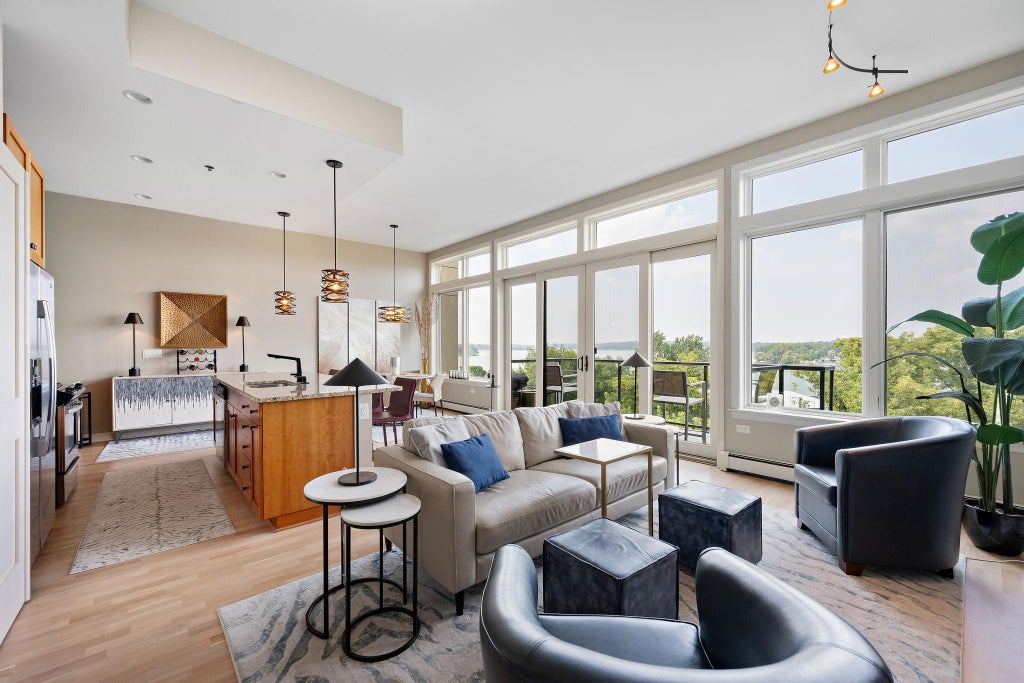 DISCOVER the Best value on a top floor condo at “The Mist” overlooking Lake Minnetonka. IDEAL property for someone on the go or travels a lot. The unit is in excellent condition w/wall of glass to bring in lots of light which offers panoramic lake views and tranquil sunsets. High end finishes include wood floors, large granite center island, stainless appliances, expansive ceiling height and balcony to unwind on. Bedroom has walk-in closet, full bath w/dual sink basins and shower - plus convenient front load washer/dryer. Other amenities include spacious complex party room w/kitchen, updated fitness area, 2 heated parking spots (P1 units 163 & 164 near the elevator) and storage locker (#512) Location is hard to beat in the Heart of the lake area being adjacent the Dakota trail and an EZ walk to numerous bars/restaurants close by; including Lord Fletchers, The Vitalist and Cabana Anna’s. Plus, Association Boat Dock on Spring Park Bay (for day use only). Association doc’s attached on MLS as supplements too.