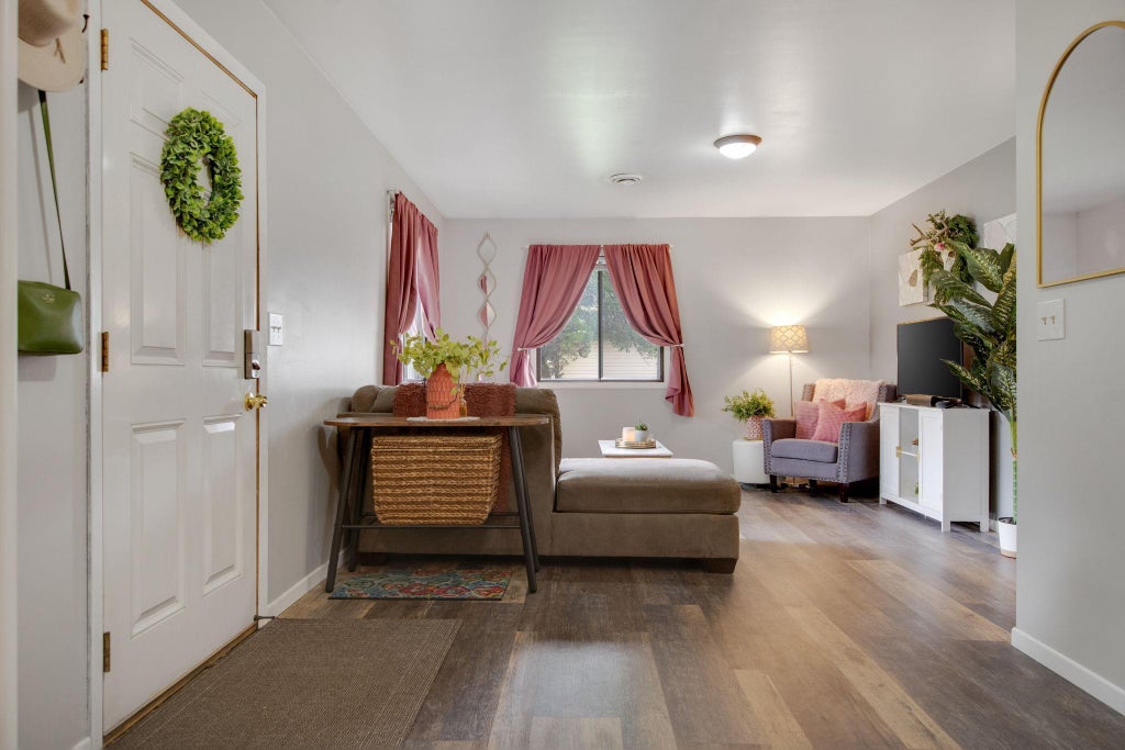 Adorable one-level townhome offering true single-level living—no stairs! Inside you’ll find updated flooring throughout and a fresh white-and-gray neutral palette that feels clean and inviting. Recent updates include a new garage door opener and keypad, water heater, plus HVAC tune-ups for peace of mind. Located in a quiet neighborhood with access to two pools, you’ll also enjoy being close to major highways, multiple parks, and beautiful golf courses. 1 Year Cinch home warranty included! Move-in ready and easy to love!