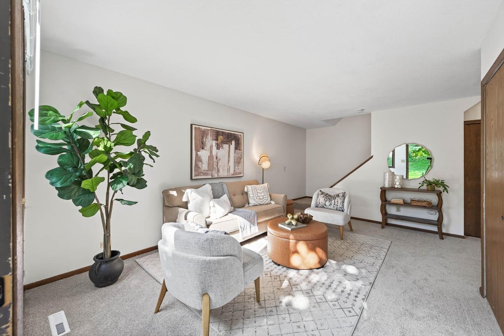 Welcome to this charming 2-bedroom, 1-bathroom end-unit townhome located in a vibrant Brooklyn Park neighborhood. Step inside to find brand-new carpet and fresh paint throughout, creating a move-in ready feel. The main level offers convenient access to the attached single-car garage—perfect for those chilly Minnesota winters—along with a cozy kitchen and spacious living room. Upstairs, you’ll discover two generously sized bedrooms and a full bathroom. This home is part of a strong, well-managed association that completed roof and siding updates in 2019, ensuring peace of mind for years to come. Residents enjoy access to two heated inground pools, beautifully maintained common areas, and a welcoming community atmosphere. As an end unit, you’ll also appreciate the private green space right outside your door—a rare and desirable feature in this development. Don’t miss your chance to own this wonderful home—schedule your showing today!