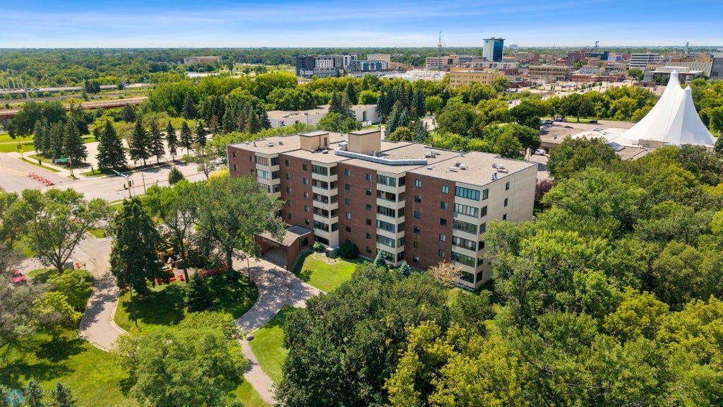 Welcome to this spacious, corner-unit main level condo with gorgeous treed views along the Red River near a large park, walking trails and many vibrant downtown Fargo and downtown Moorhead amenities! Two bedrooms and two baths include a private primary ensuite bath. Modern kitchen design opens to spacious living room and semi-formal dining. Enjoy wildlife views of deer, turkeys and more from private, walk-out patio. In-unit laundry with washer and dryer included. Great storage with the double closets in the foyer, linen closets, and storage closets both on the patio and in the garage. Gas forced air and central air. Designated parking space in the heated, underground garage that has car wash and detailing bay and elevator plus guest parking in the lot. Clean and welcoming lobby and common areas. Association fee includes water, sewer, garbage, cable TV, snow removal, lawn care, outdoor maintenance and building insurance. Perfectly located, move-in ready condo!