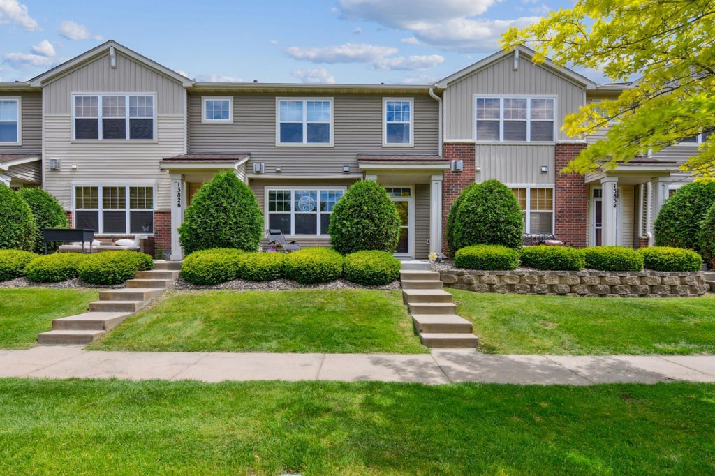 Spacious and bright 2-bedroom, 3-bath townhome. Located in private part of the neighborhood, overlooks gorgeous park like setting. Home is bright and open with fresh paint and upgrades. Main level has gleaming cherry floors! Kitchen is appointed with granite countertops and plenty of warm nutmeg custom wood cabinets! There's a counter sitting area overlooking the kitchen too. The living room has a cozy gas fireplace with a wood mantle. Newer window insulated shades that pull up or down! There's even an upgraded powder room just off the kitchen. The upper level has a huge owner's ensuite with a spacious walk-in closet and private 3/4 upgraded bath with double sinks and tiled shower. Cherrywood floors in both bedrooms and loft! The huge loft could easily be converted into a 3rd bedroom if desired. The laundry room and a full bath complete the upper level. HVAC system replaced in 2023. New roof in 2023. Convenient location and School District 196. Rentals allowed.