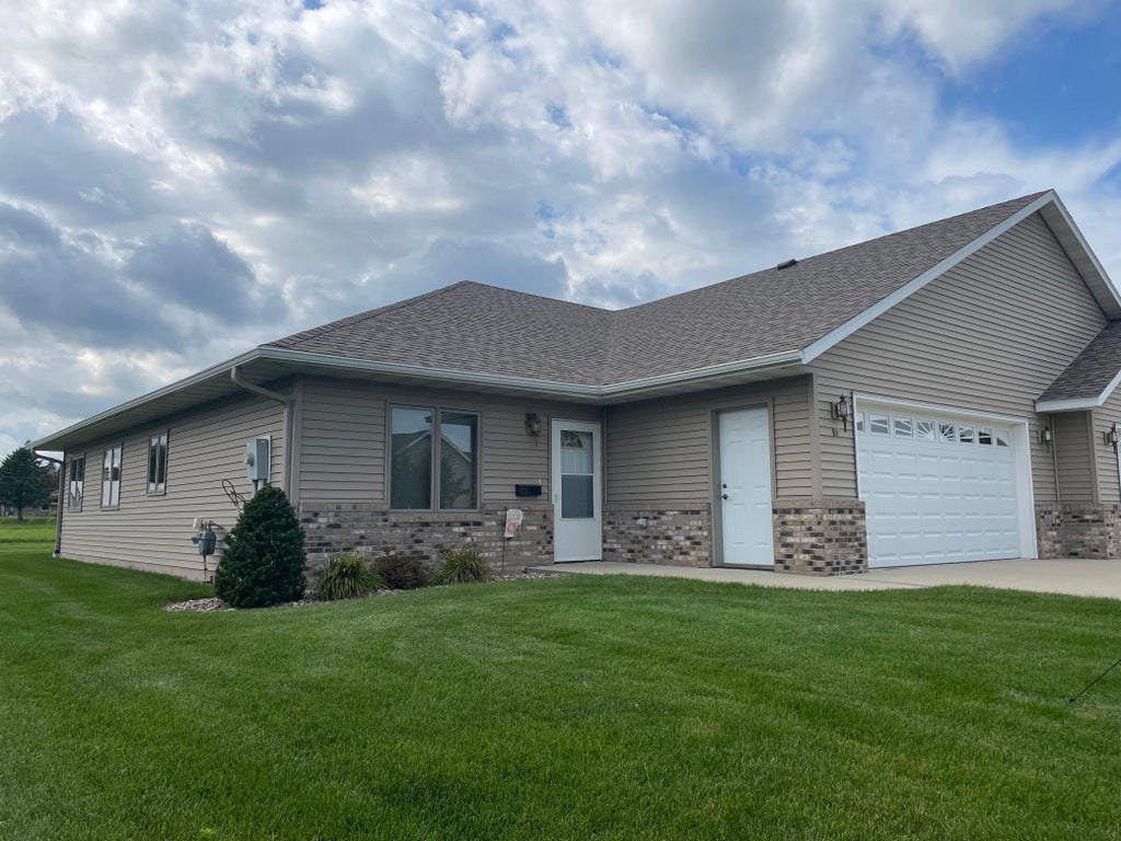 This quality-built, one-level townhome offers comfortable, carefree living with an open floor plan and thoughtful design throughout. The spacious kitchen features abundant cabinetry and a peninsula that flows into the dining area and welcoming family room-perfect for everyday living or entertaining. A separate den leads to a covered concrete patio for outdoor enjoyment. The large primary bedroom includes a walk-in closet, laundry area, and private full bath. A second bedroom and 3/4 bath provide extra space for guests or family. Enjoy the comfort of in-floor heat throughout the home and the finished 2-stall garage. Move right in and start living easy!