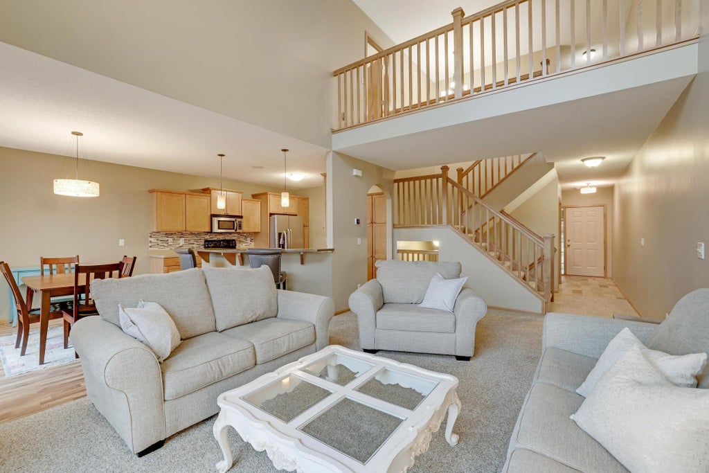 Golf and Lake-Lovers, TAKE NOTICE! The second you step inside this immaculate townhome with massive “wow-factor” windows and vaulted ceilings, settled a block behind hole #4 in the highly sought-after Wild’s Golf Club neighborhood, you’ll know with absolute certainty that the perfect home DOES exist! Boasting nearly 2,500 sq. ft. of living space, with 3 bedrooms on one level, 4 bathrooms, a 2-car garage, and gorgeous natural sunlight throughout, this rare gem seriously has it all! The home’s main floor is the epitome of open-floor-plan living, with a stunning living room, dining area overlooking the back porch, and a spacious kitchen, complete with stainless steel appliances, tons of cabinet space, and a cozy breakfast bar. The upstairs primary suite is an absolute dream, with a spa-worthy ensuite bathroom, and spacious walk-in closet. The lower level’s sprawling recreation room features a beautiful gas fireplace and plenty of space to take in a family movie night, or enjoy your favorite hobbies. Nearby Meadows at Mystic Lake Golf Course, Dakotah Sports & Fitness, Mystic Lake (the Lake!), as well as Mystic Lake Casino & Hotel, are all within walking distance, or a quick drive down the street. Easy access to Highways 13 and 169, 30-minutes from downtown Minneapolis, and 20-minutes from MSP Airport. Target, HyVee, Cub Foods, and Fresh Thyme are all within a 10-minute drive, making it a breeze to check things off your grocery and to-do lists. Tons of delectable restaurant options are also close by, with local favorites such as McCoy’s Copper Pint, Bravi’s Craft Mexican Kitchen, and Charlie’s On Prior. These new digs are truly a step above the rest - come see it in all its glory for yourself!
