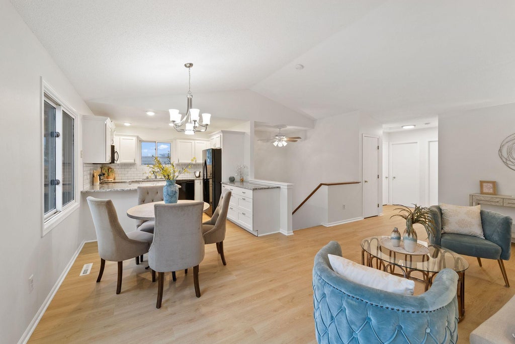 Completely remodeled and updated townhome offers 2 bedrooms and 2 bathrooms with vaulted ceilings and an open layout filled with natural light. Recent updates include new flooring, fresh paint, and a remodeled kitchen/newer appliances