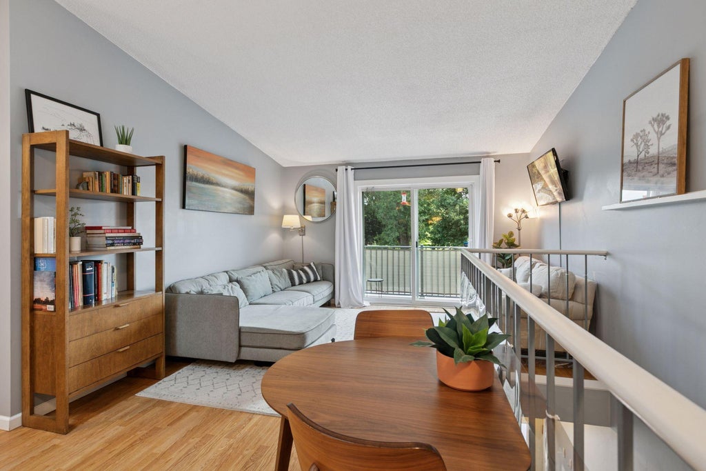 Welcome to this beautiful 2-bedroom, 1-bathroom home featuring an open floor plan perfect for modern living. The kitchen boasts new countertops, a convenient kitchen bar, and flows seamlessly into the living and dining areas—ideal for entertaining friends and family! Enjoy how natural light fills the vaulted ceilings through the skylight. Step out from the living room onto your own balcony, a private retreat for morning coffee or an evening cocktail. The updated bathroom offers a fresh, contemporary feel, with an oversized jacuzzi tub, while the primary bedroom includes a walk-in closet for extra storage and custom built-in closets. Additional perks include an attached tuck-under garage and unbeatable access to local parks, lakes, bike trails, shopping, and major highways like I-694 and 35E. This home truly combines comfort, convenience, and style—don’t miss your chance to make it yours!