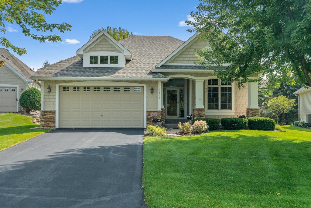 Stunning Cul-de-Sac Retreat with Main-Level Living! Welcome to this beautifully designed home where style, comfort, and convenience meet! Featuring 10-foot ceilings and hickory hardwood floors, this home offers a spacious open layout with all living facilities on one level. The inviting living room fireplace sets the tone for cozy gatherings, while the sunroom and den provide flexible spaces to relax or work from home. The chef-inspired kitchen boasts granite countertops, double ovens, stainless steel appliances, cherry cabinetry, a large center island, and a striking tile backsplash that extends all the way to the ceiling! The main floor's Laundry Room also includes a newer Speed Queen Washer and Dryer (2023) and Downstairs, the finished lower level features a family room with a second fireplace, a wet bar, two additional bedrooms, and abundant storage. Step outside to enjoy a park-like backyard with beautiful landscaping, or take advantage of the incredible community amenities! The HOA covers snow removal, lawn care, sanitation, two heated pools, over 8 miles of trails, parks, and more — giving you a low-maintenance lifestyle with endless recreational options. This home combines elegance, functionality, and an unbeatable location on a quiet cul-de-sac. Don’t miss your chance to make it yours!