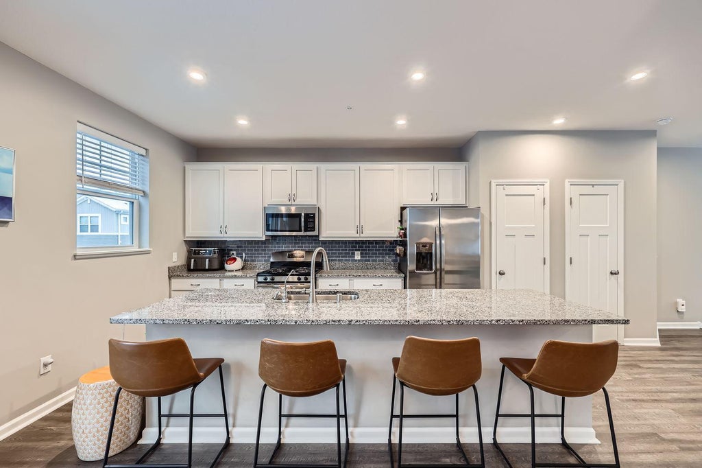 This stunning home features an open-concept floor plan with expansive windows that flood the space with natural light. Enjoy sleek modern finishes and a host of upgrades thoughtfully completed by the seller. The bright, white kitchen boasts a custom tile backsplash, an oversized center island, stainless steel appliances, and a spacious walk-in pantry. The cozy Family Room is anchored by a gas fireplace with elegant tilework and custom built-ins on both sides. Upstairs, you'll find three generously sized bedrooms, two full bathrooms, and a convenient laundry area. Garage offers abundant storage and endless possibilities. Ideally located with easy access to major highways, shopping, dining, and the scenic Gateway Bike Trail. Enjoy low-maintenance living with snow removal and lawn care included—association living at its finest.
