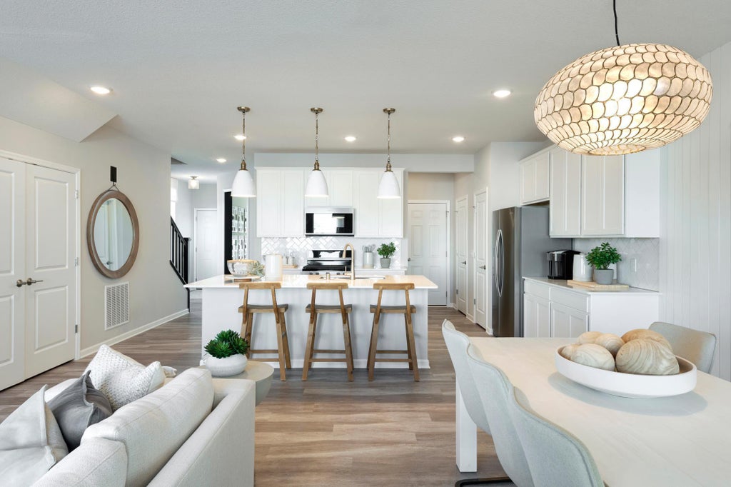 The Ashton floorplan features an inviting open-concept kitchen and living space, perfect for entertaining. Enjoy the sleek white cabinets, a gas range, gorgeous white quartz countertops, and a spacious island. Relax in the gathering room, where three large windows along the back wall fill the space with natural light, creating a warm and inviting atmosphere. The upper level offers three bedrooms, including two with walk-in closets, as well as two full bathrooms and a separate laundry room equipped with an energy-efficient washer and dryer. Located in AirLake, this home is just steps away from a brand-new city park featuring a playground, baseball field, basketball court, and pickleball court. You’ll also be minutes from the Woodbury Lakes shopping center and popular restaurants with convenience at your fingertips. AirLake is served by the highly rated District 833 Schools, including Liberty Ridge, Lake Middle, and Eastridge High School. Don’t miss this fantastic opportunity!